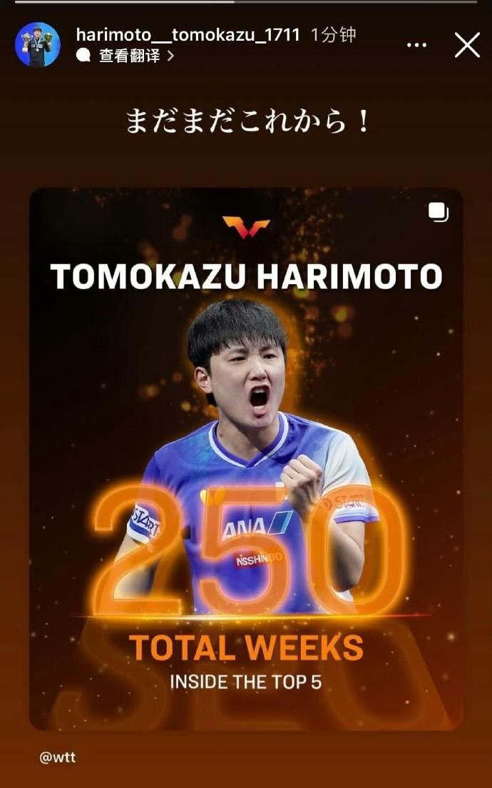 8月20日,国际乒联公布2025年第34周世界排名,林诗栋、王楚钦位列前二,WTT横滨冠军赛男单冠军张本智和排名上升1个名次位列第三。这也是张本智和累计250周排名世界前五,随后他发文表示:现在才刚刚开始呢!